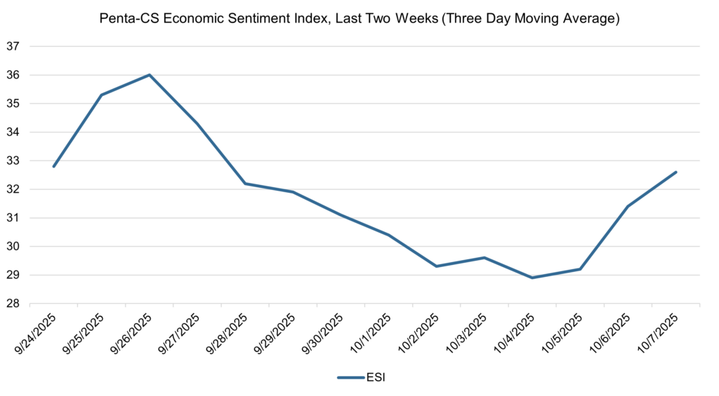 The latest biweekly reading of the Penta-CivicScience Economic Sentiment Index (ESI) rose by 0.2 points, from 31.7 to 31.9, at the start of the third quarter of 2025 and following the first government shutdown since 2019.