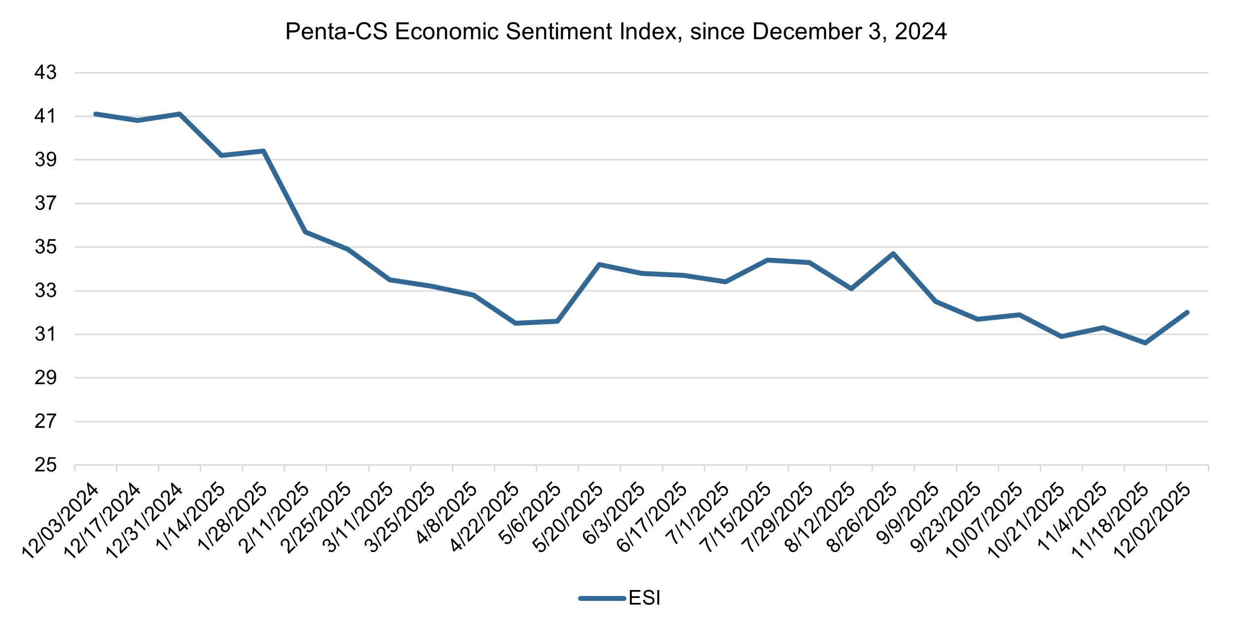 The latest biweekly reading of the Penta-CivicScience Economic Sentiment Index (ESI) rose by 1.4 points, from 30.6 to 32.0, ahead of the December meeting of the Federal Open Markets Committee (FOMC).